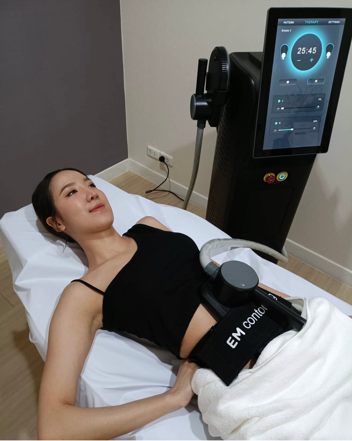HIFEM (High-Intensity Focused ElectroMagnetic Field) คือเทคโนโลยีคลื่นแม่เหล็กไฟฟ้า ที่ใช้ในการบำบัดและรักษาผู้ที่มีปัญหาเกี่ยวกับความแข็งแรงของกล้ามเนื้อ และยังสามารถนำมารักษากับคนที่ต้องการให้กล้ามเนื้อหน้าท้องมีความชัดขึ้น หรือบั้นท้ายกระชับขึ้นได้อีกด้วย โดยที่คุณไม่ต้องเหนื่อย ไม่ต้องเสียเวลาไปกับการออกกำลังกาย ที่สำคัญคือปลอดภัยสูง และไม่ต้องเปิดแผลผ่าตัดใด ๆ ค่ะ